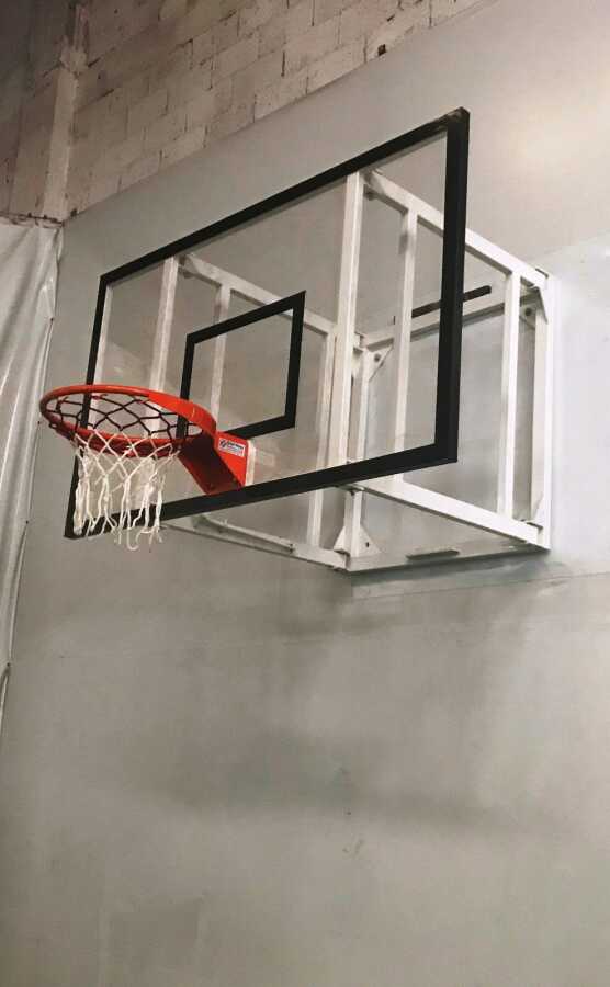 105*180 20 mm Akrilik Cam Panyalı Basketbol Potası, 45 cm Sabit Çember ve File; Ürün içeriğinde 1 adet  20 akrilik cam panya, 1 adet 45 cm sabit çember, 1 adet 4 mm  floş ip çift rekli basketbol filesi, duvar bağlantı parçaları ve 4 adet beton dübeli bulunmaktadır.